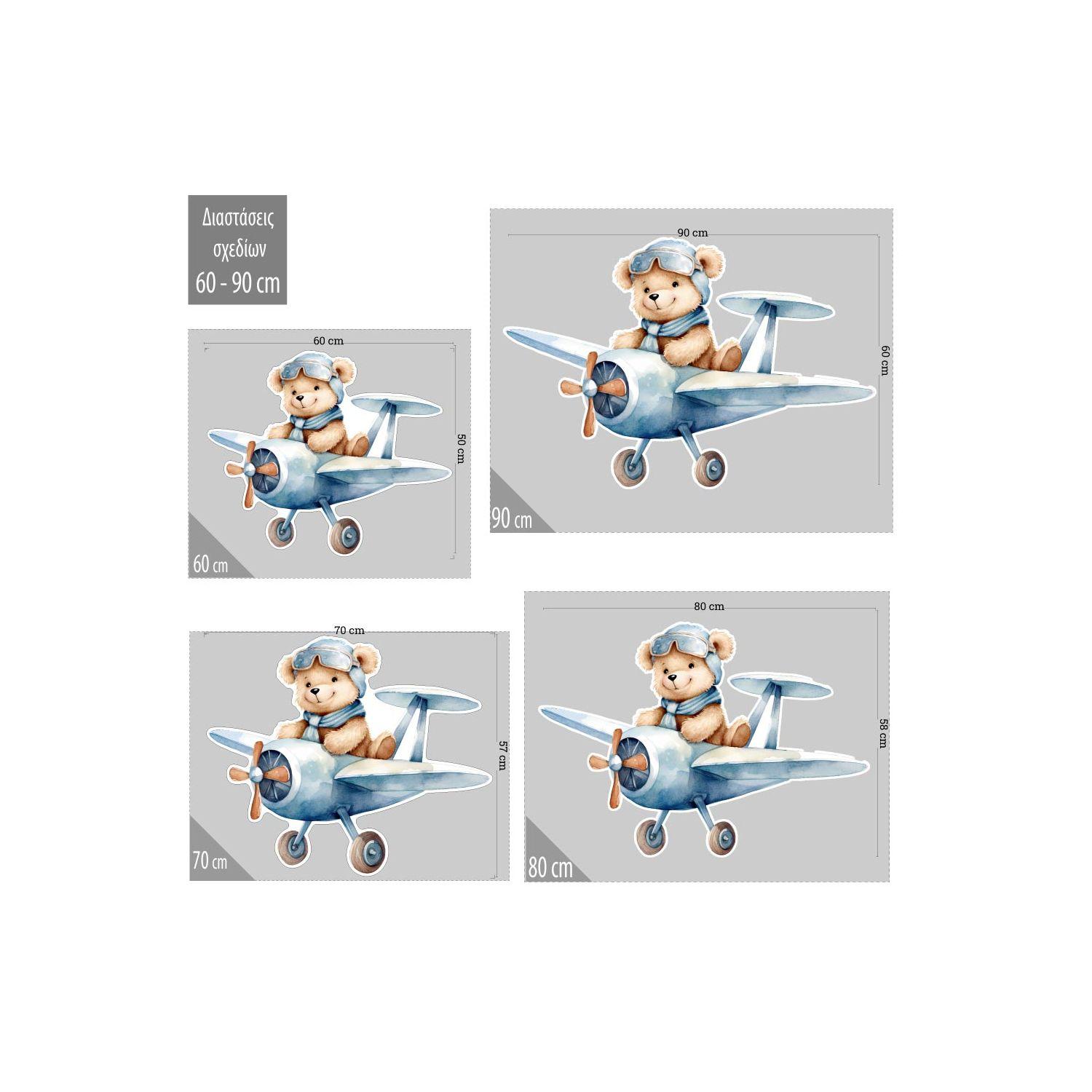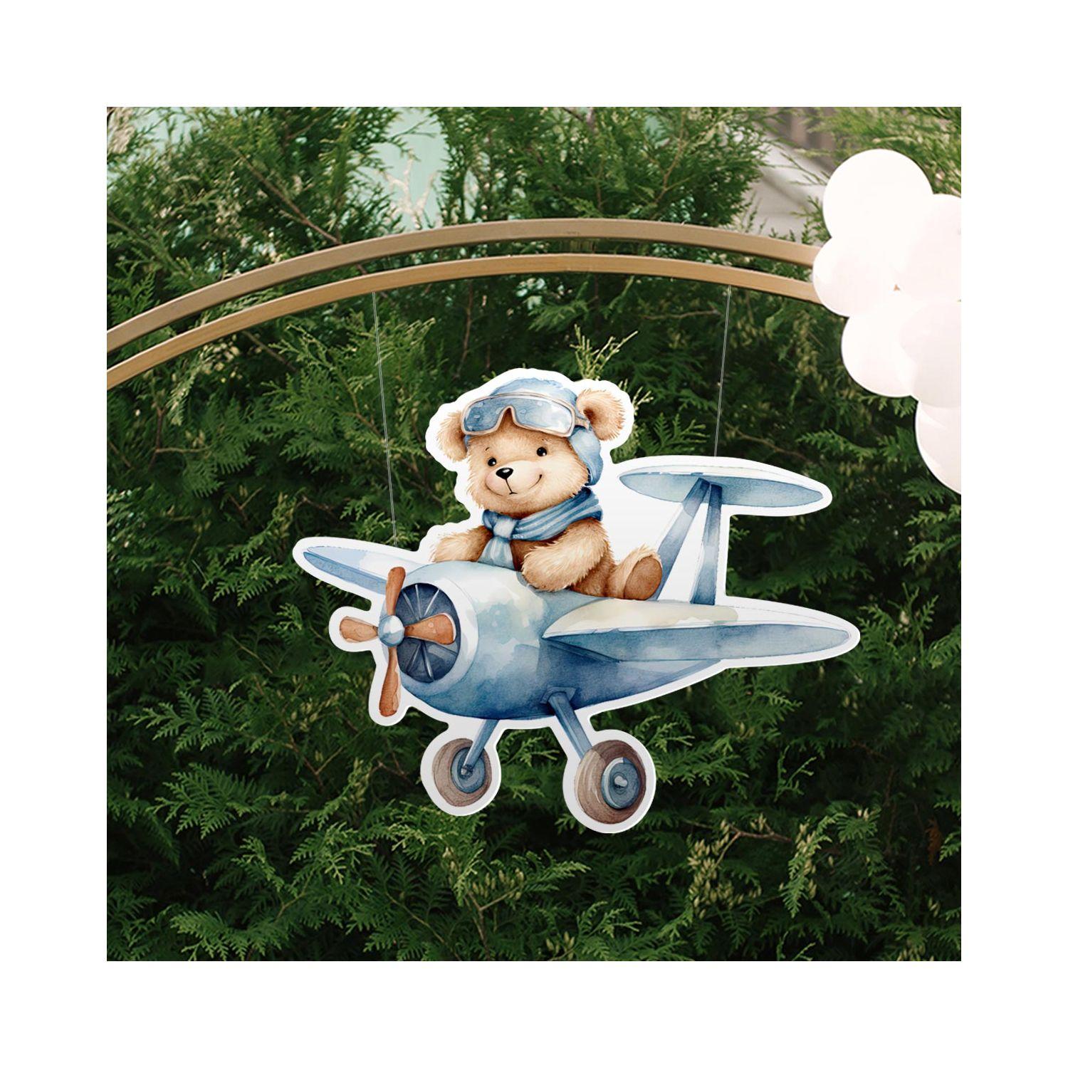 Wooden figure printed, Cute Baby Bear Pilot Blue Airplane