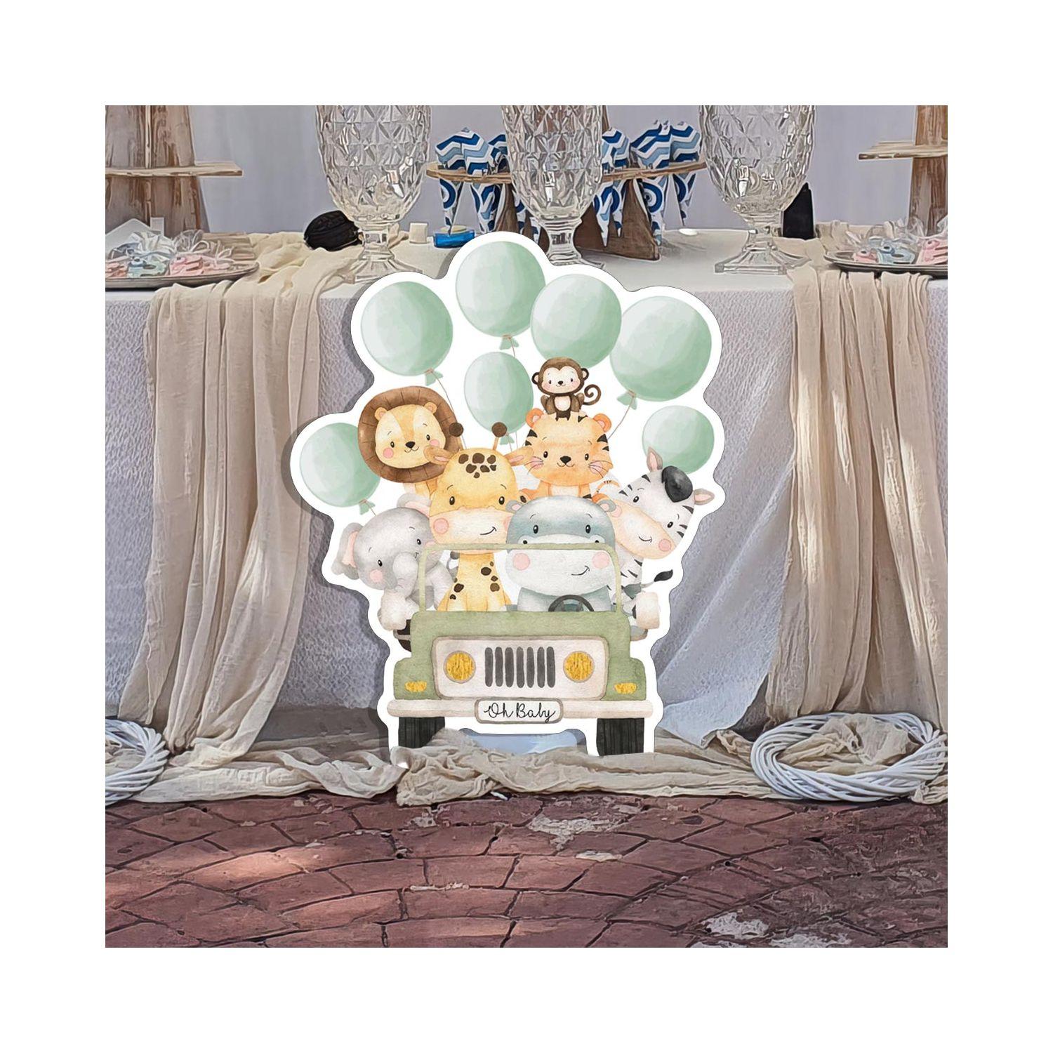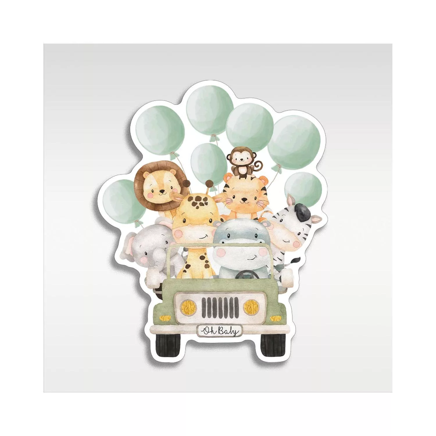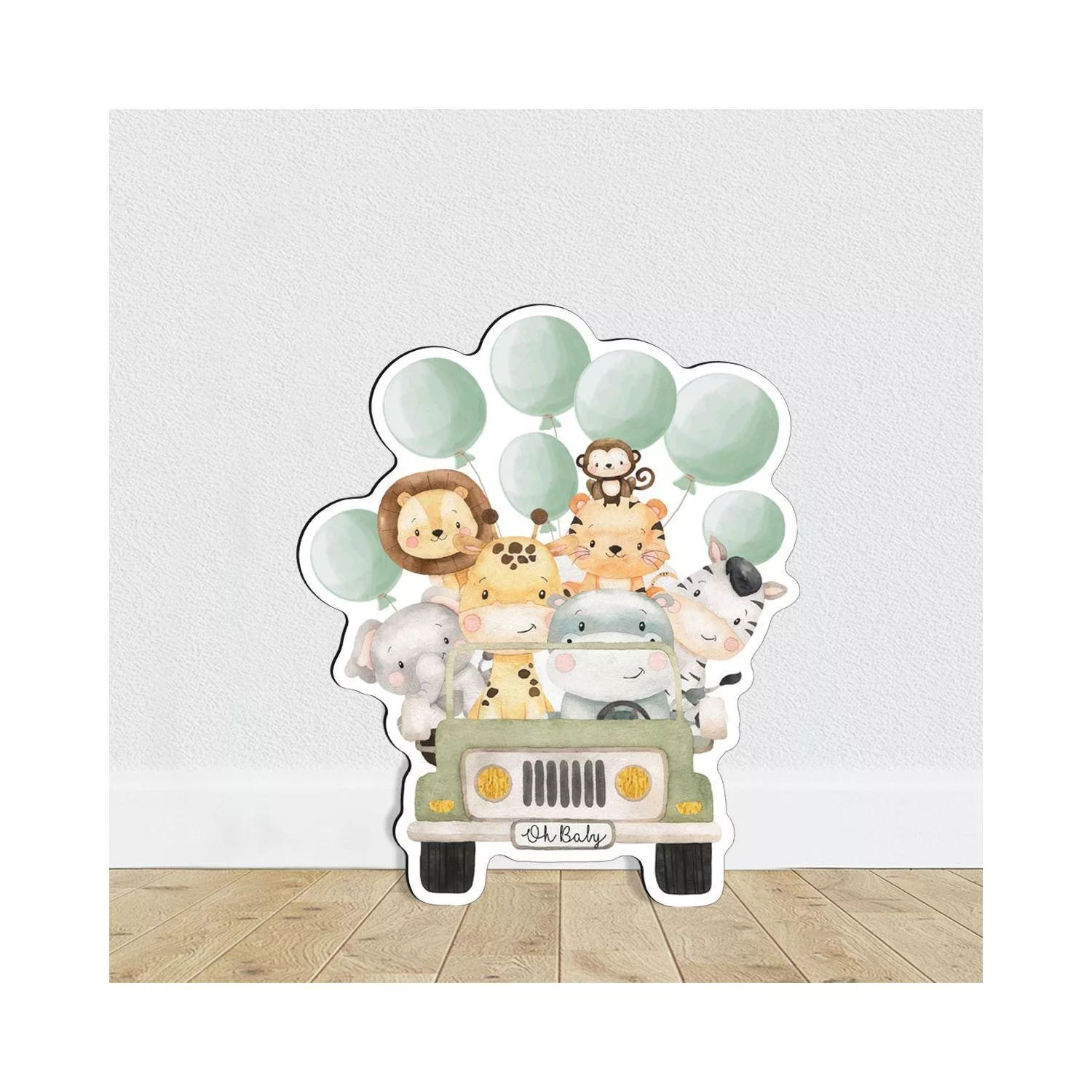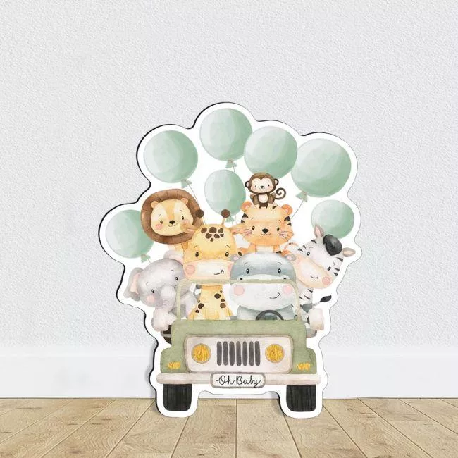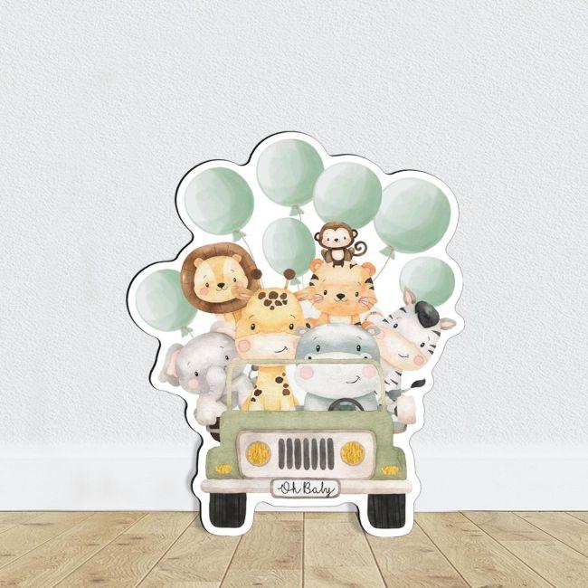 Wooden figure printed Cute watercolor animals with balloons, driving a car