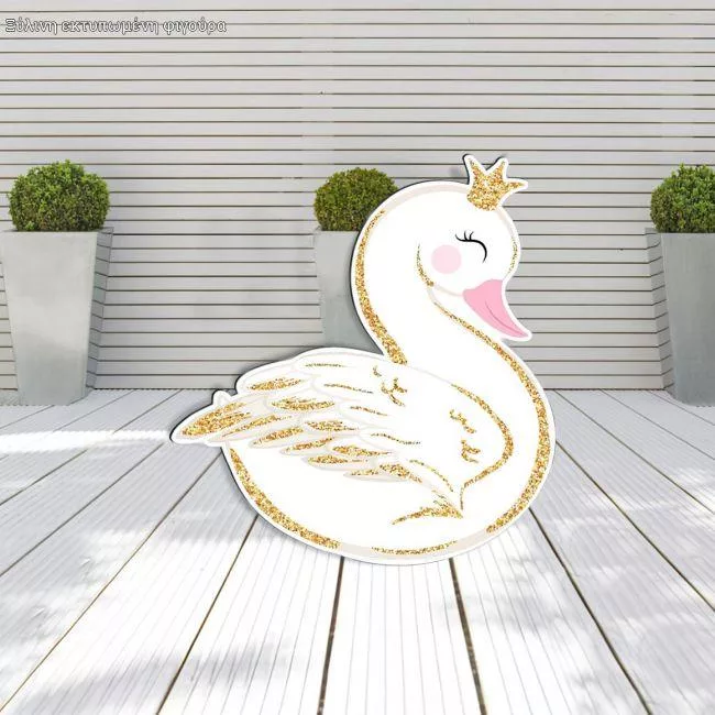 Wooden figure printed Swan flowers