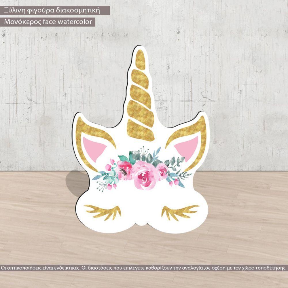 Unicorn watercolor face wooden figure printed