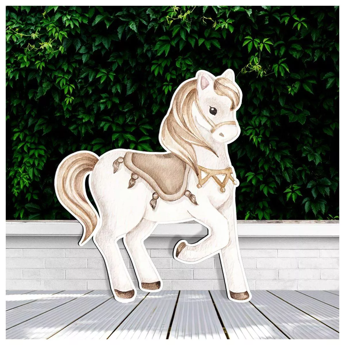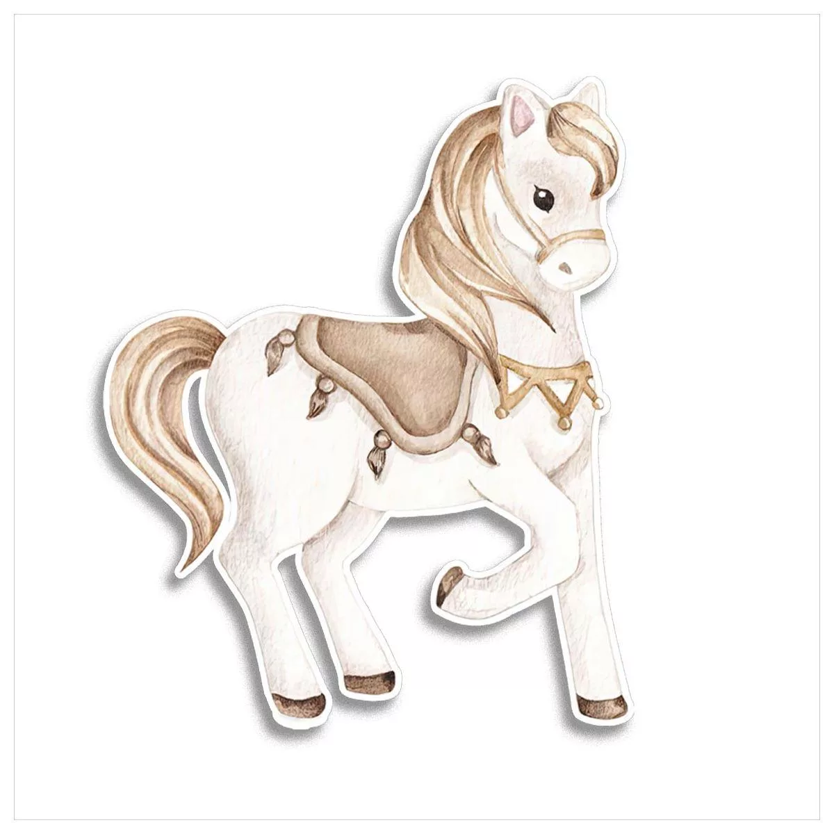 Wooden printed figure, Cute watercolor horse