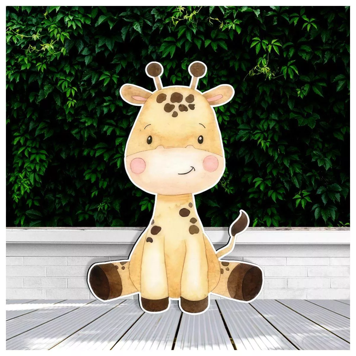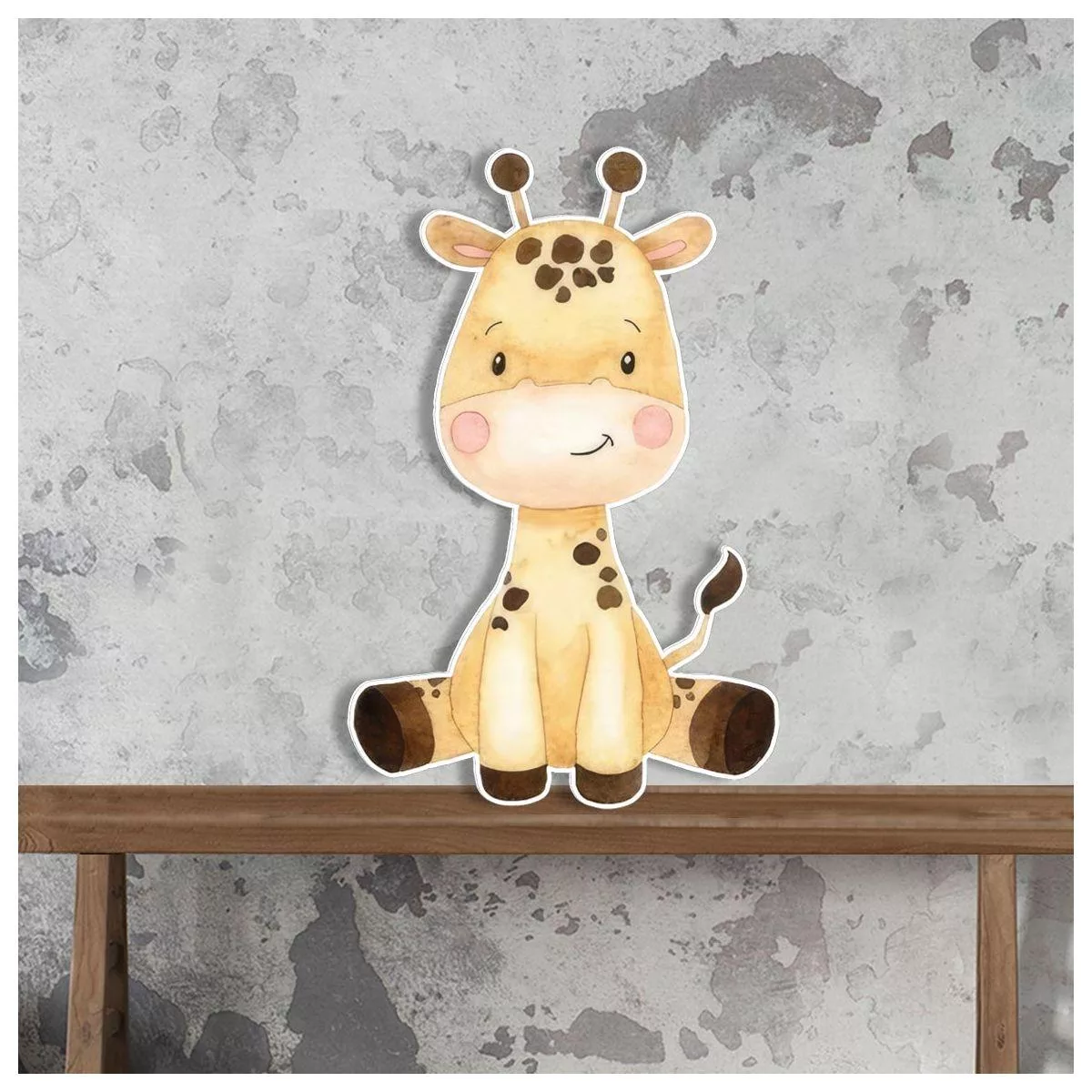 Wooden printed figure, Giraffe watercolor