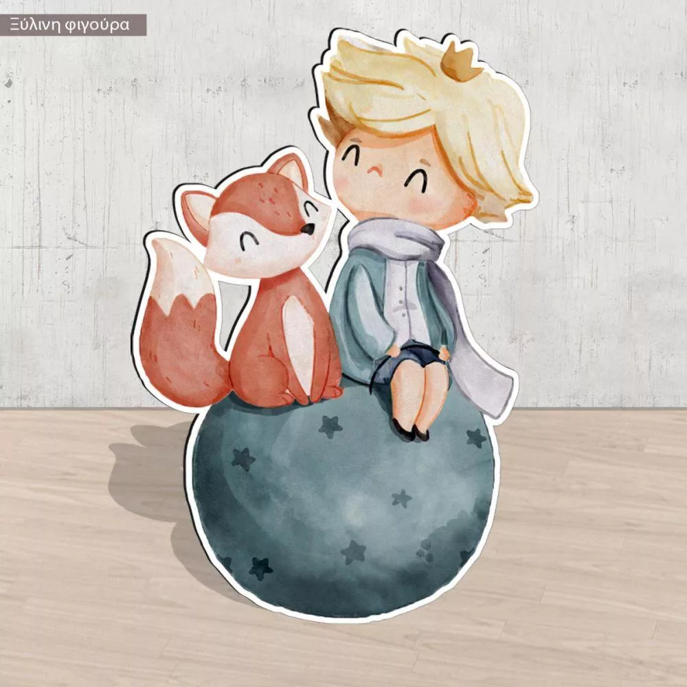 Wooden printed figures little prince watercolor