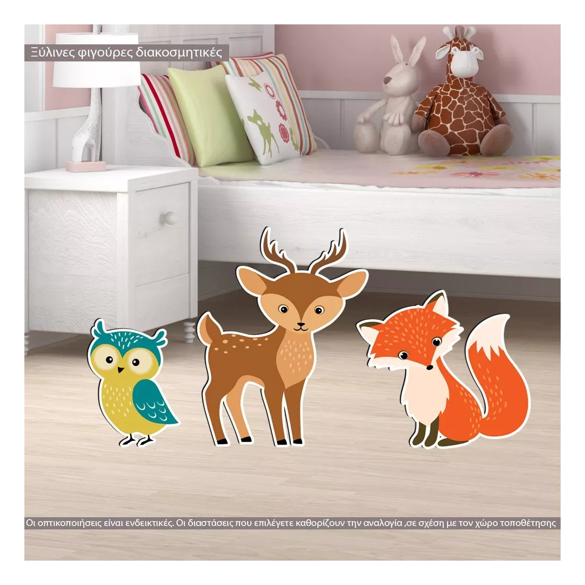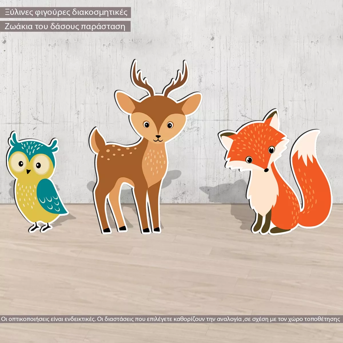 Wooden printed forest animals deer fox bear