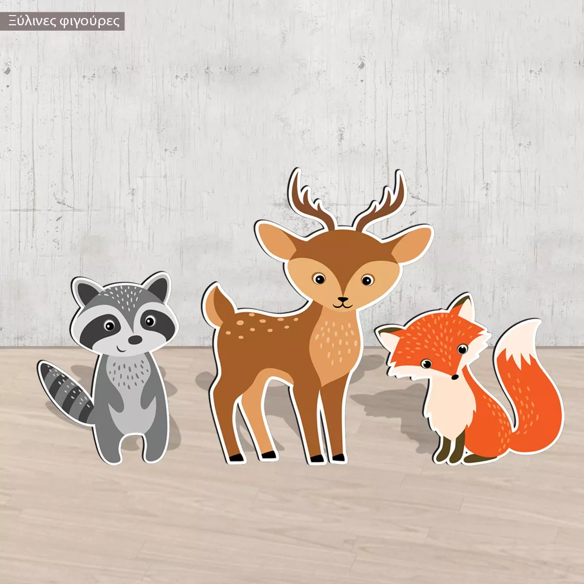 Wooden printed forest animals deer fox bear