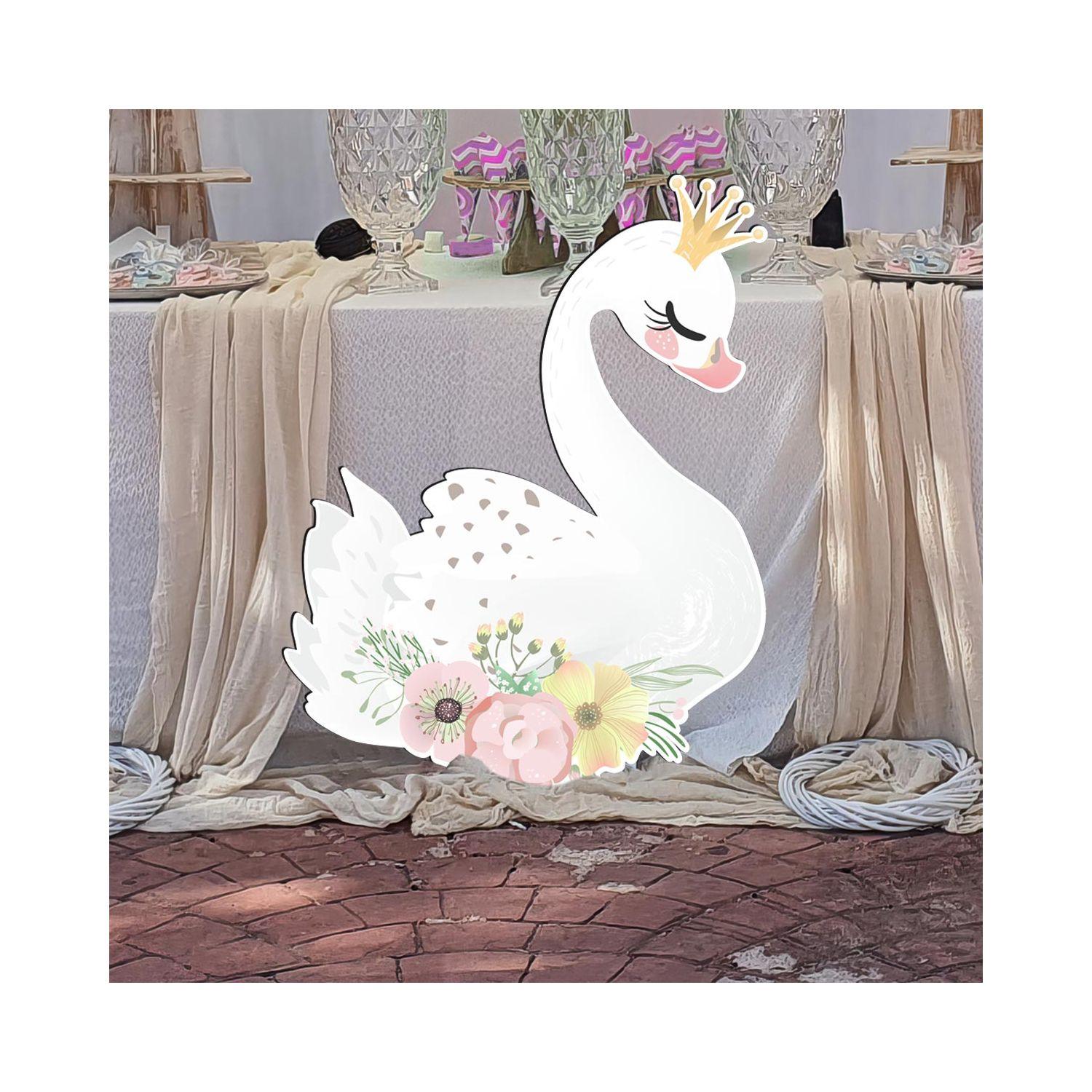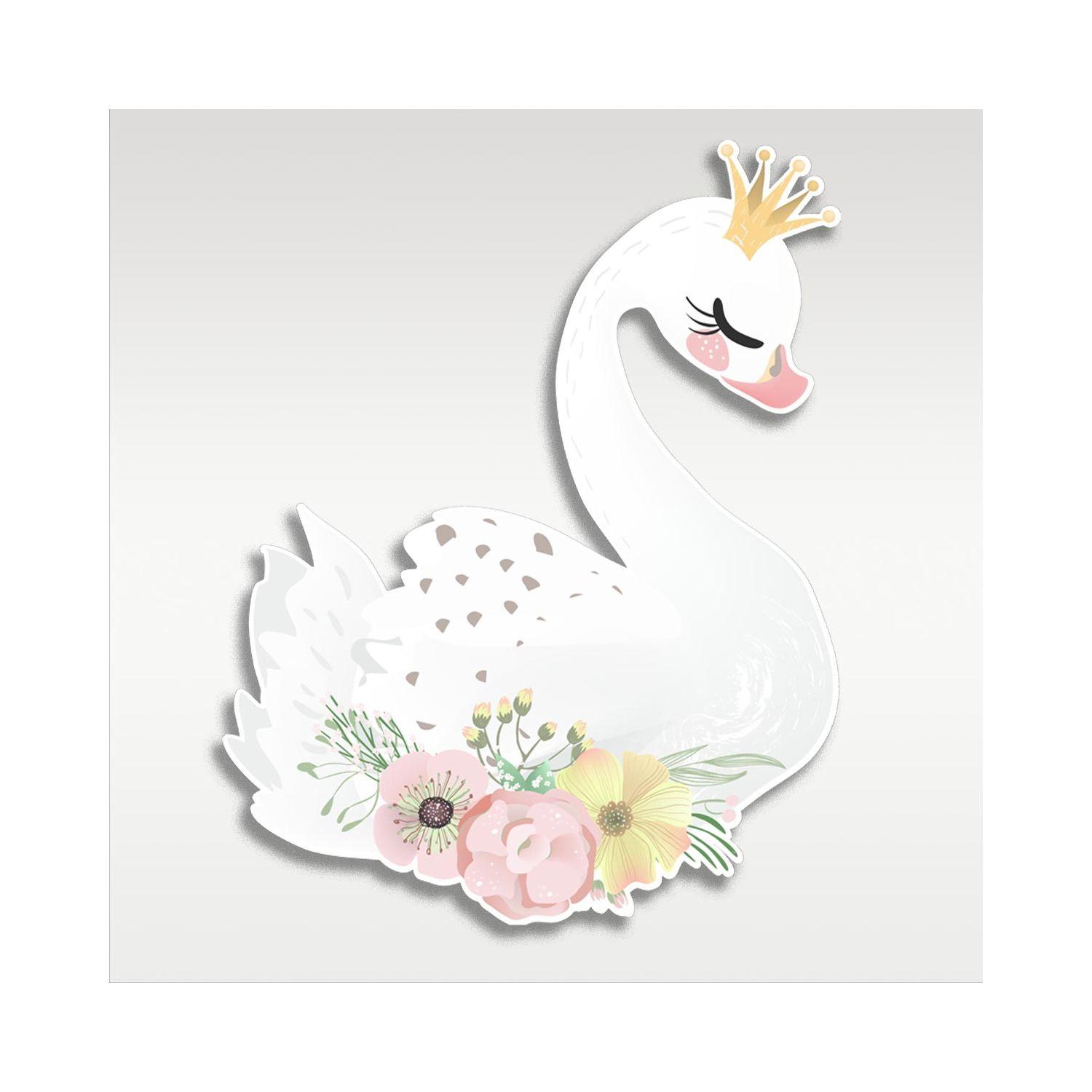 Wooden figure printed Swan flowers