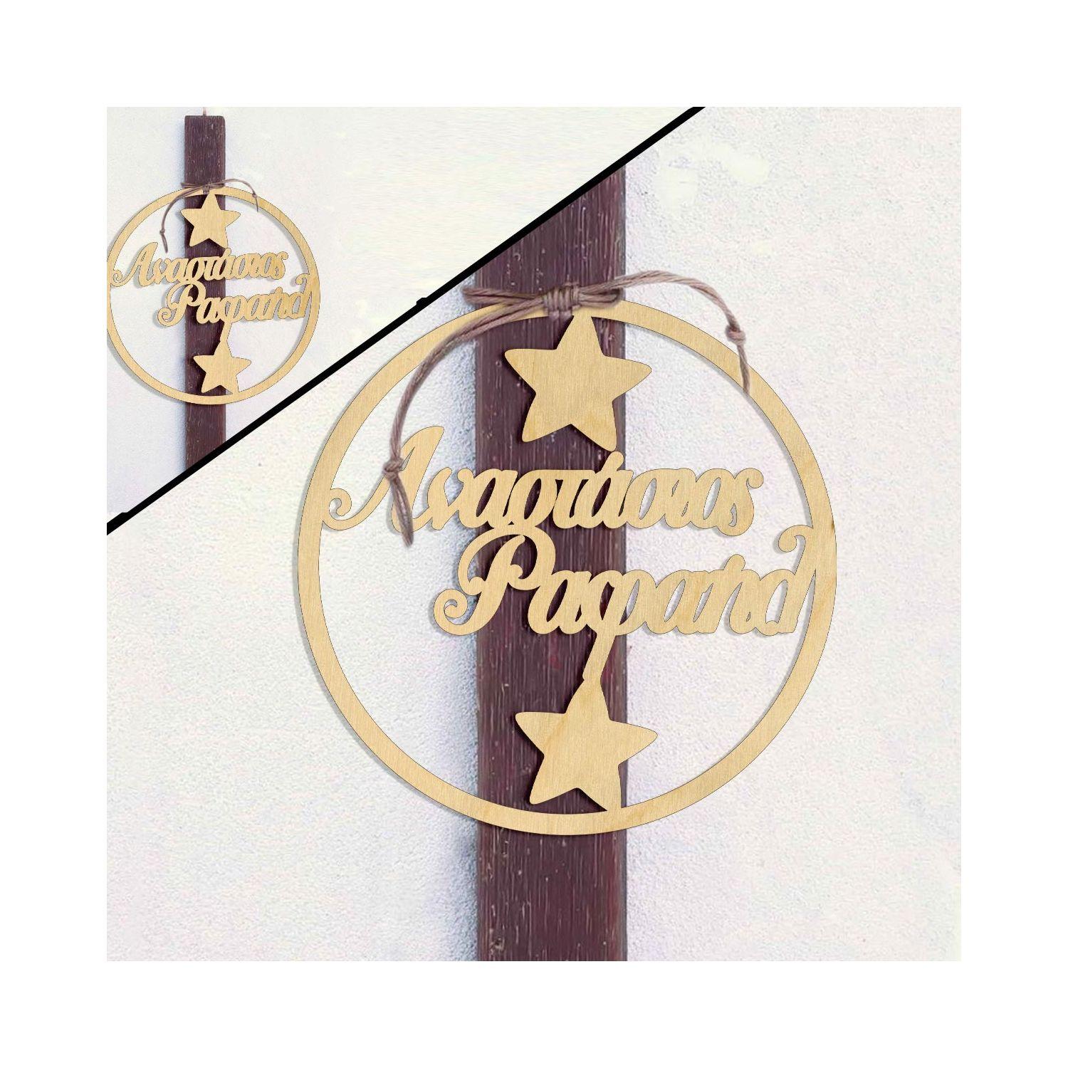 Wooden name for candle, circle stars