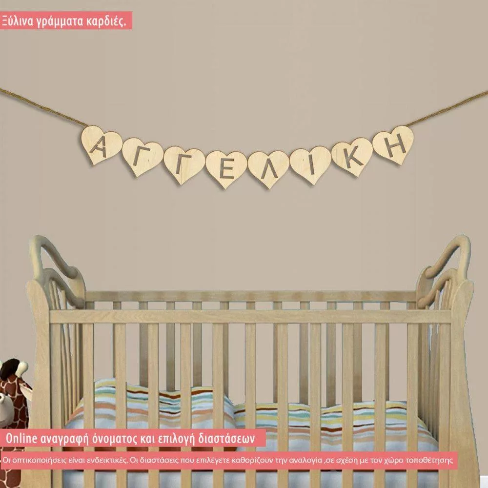 Wooden flag hearts Your name