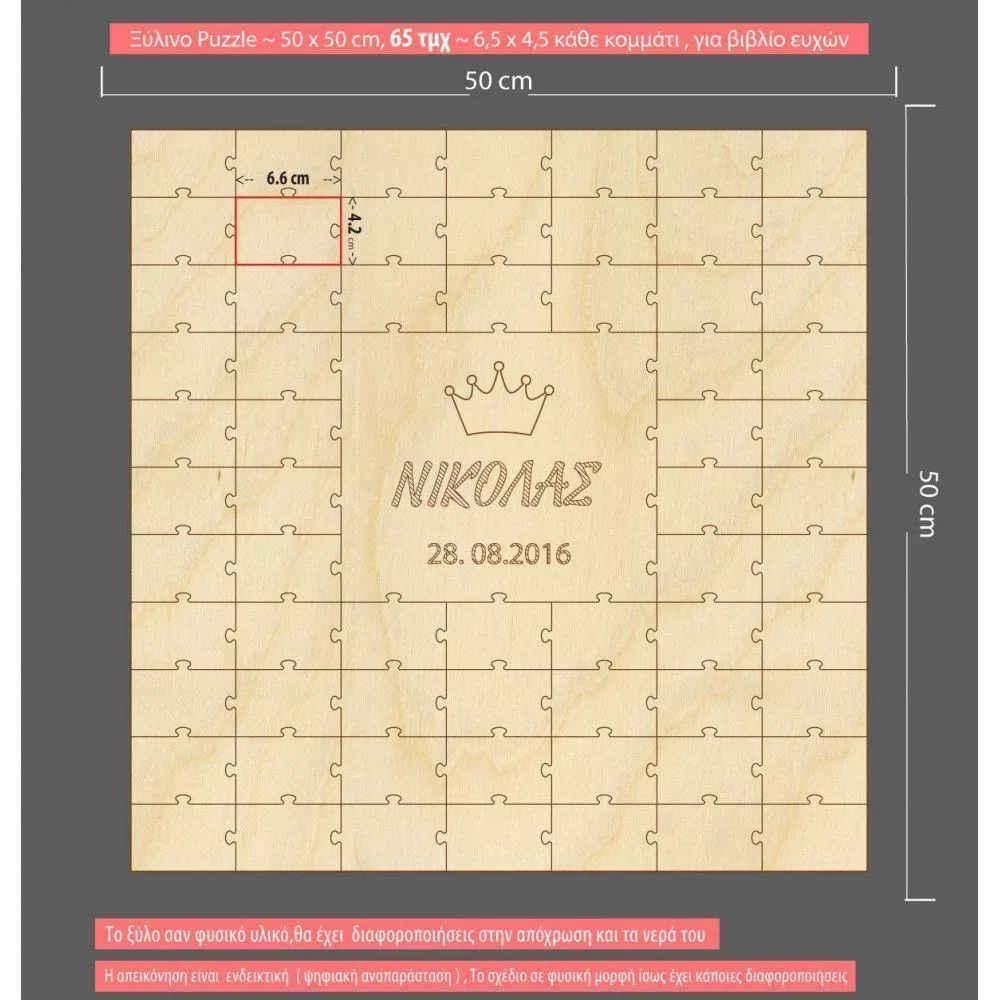 Wooden wishes board Puzzle square , engraved name
