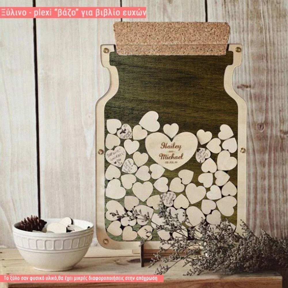 Wooden wishes board Vase with hearts